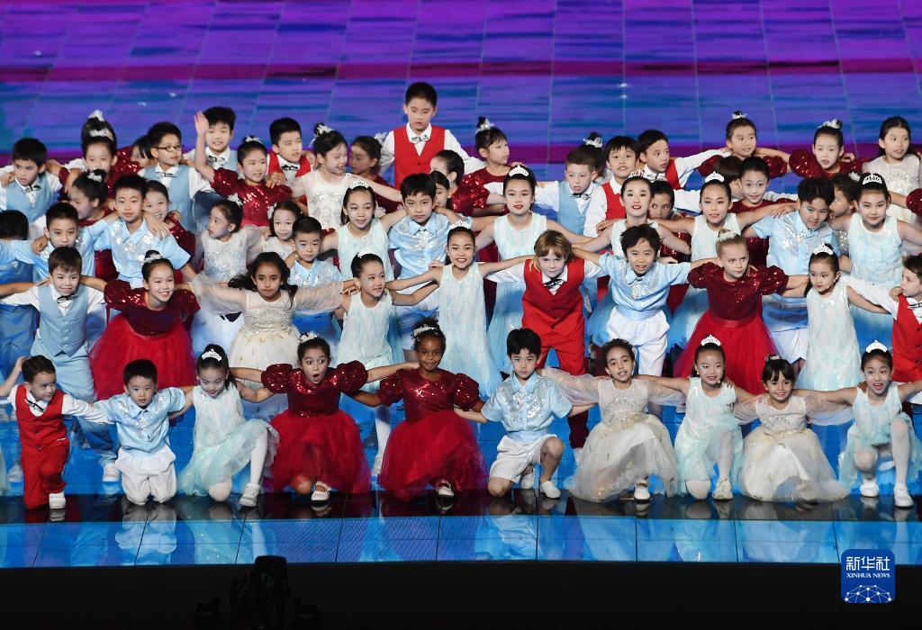 9月14日,中外小朋友在北京文化论坛文艺晚会上表演。新华社