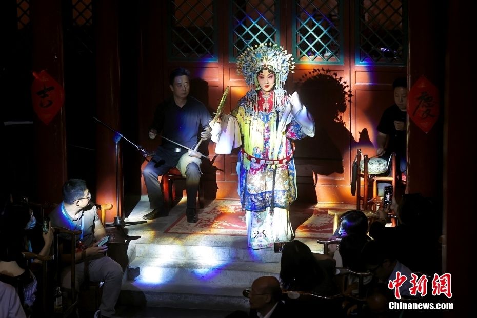 论坛嘉宾在颜料会馆观赏京剧《贵妃醉酒》选段。中新网