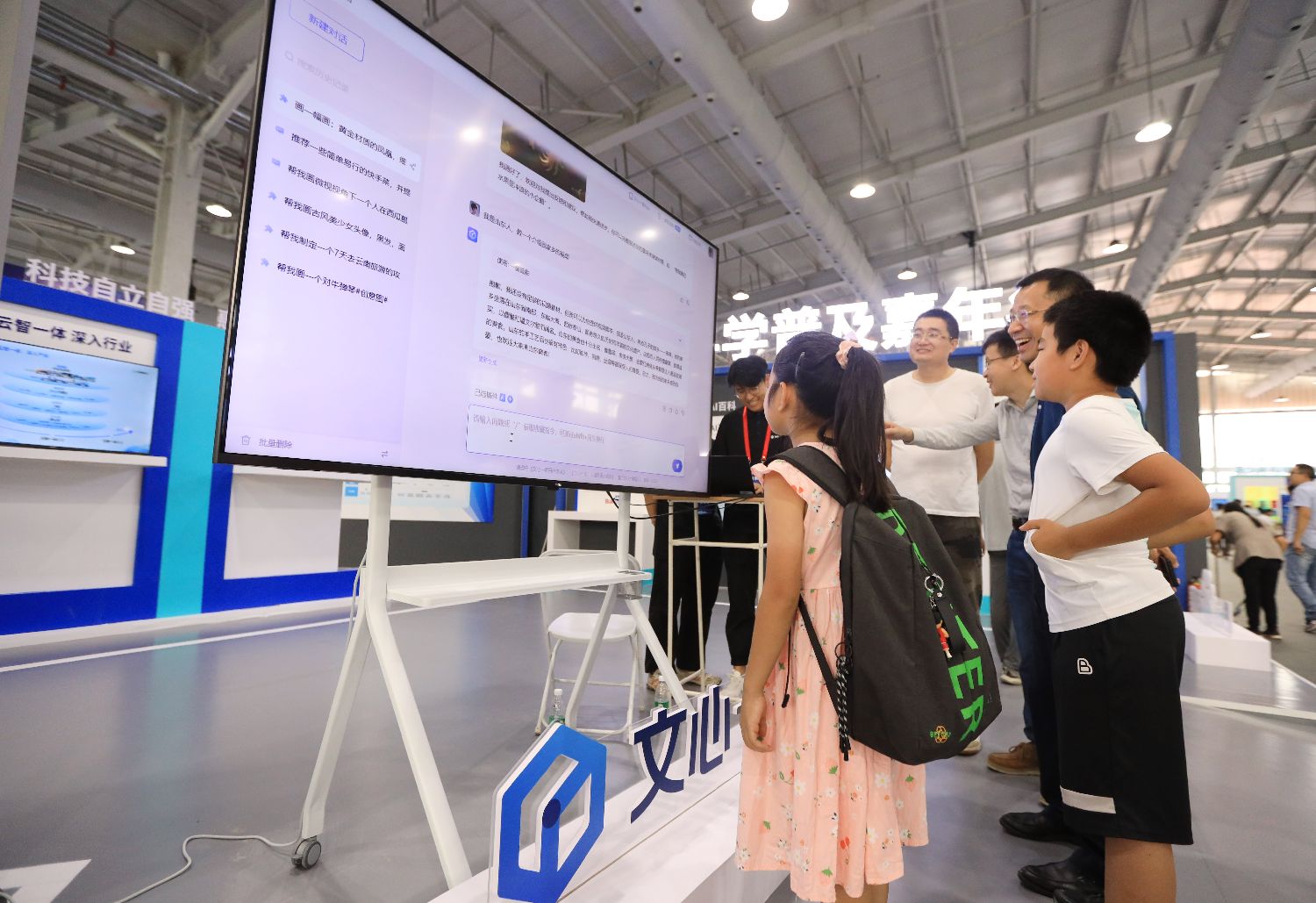 9月16日,百度展台,观众让“文心一言”帮自己做一个介绍家乡的视频。 卞程宣 摄