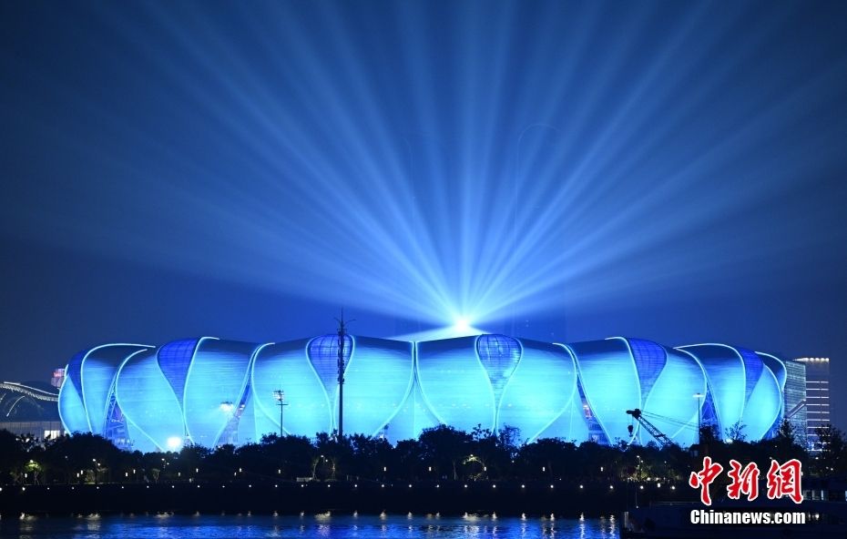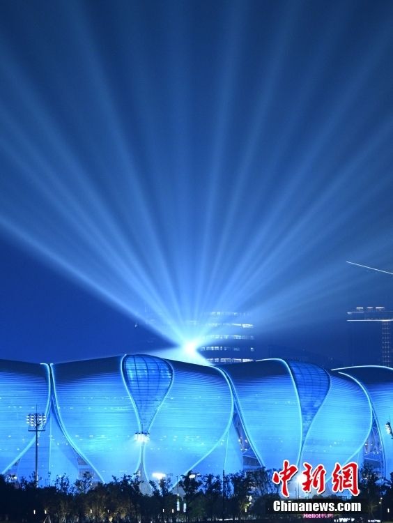 杭州第19届亚运会开幕式9月23日将在杭州奥体中心体育场举行。18日晚,开幕式最后一次全要素彩排举行,杭州奥体中心璀璨的灯光秀点亮夜空,美轮美奂。据悉,本届亚运会和历届大型赛事开幕式不同的一点是:全程不燃放烟花而改用“数字烟花”。亚运会开幕式总导演沙晓岚介绍说,杭州亚运会秉持“简约、安全、精彩”的原则,将在开幕式这一全球聚焦的时刻,传递绿色环保的理念,这是改用“数字烟花”的原因。图为9月18日晚的杭州奥体中心。中新网