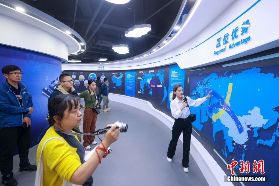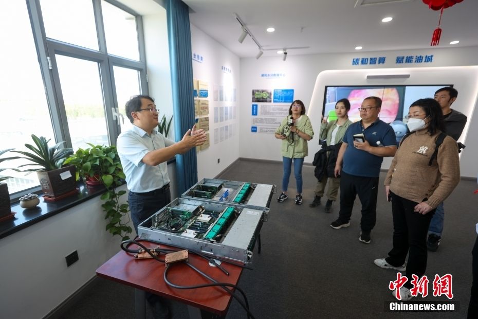 9月17日,“高质量发展调研行”新疆主题采访团参访克拉玛依云计算产业园区。图为讲解员向采访团介绍产业园区总体情况。中新网