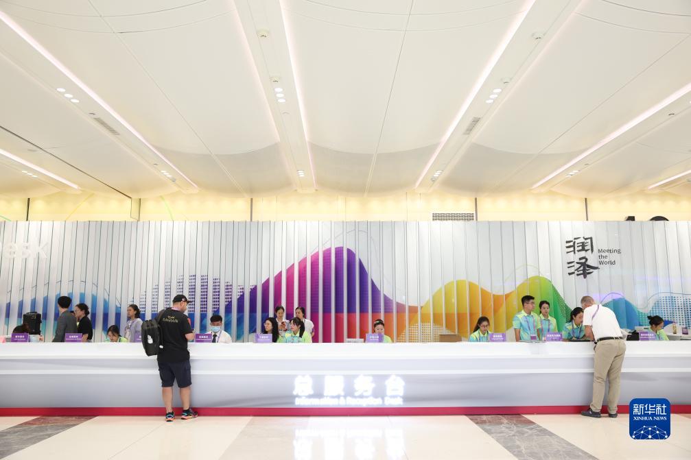 9月18日拍摄的杭州亚运会主媒体中心总服务台。新华社