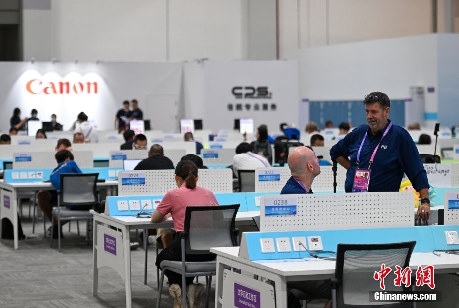 各国记者在主媒体中心开展工作,为即将迎来开幕式的杭州第19届亚运会作准备。新华社