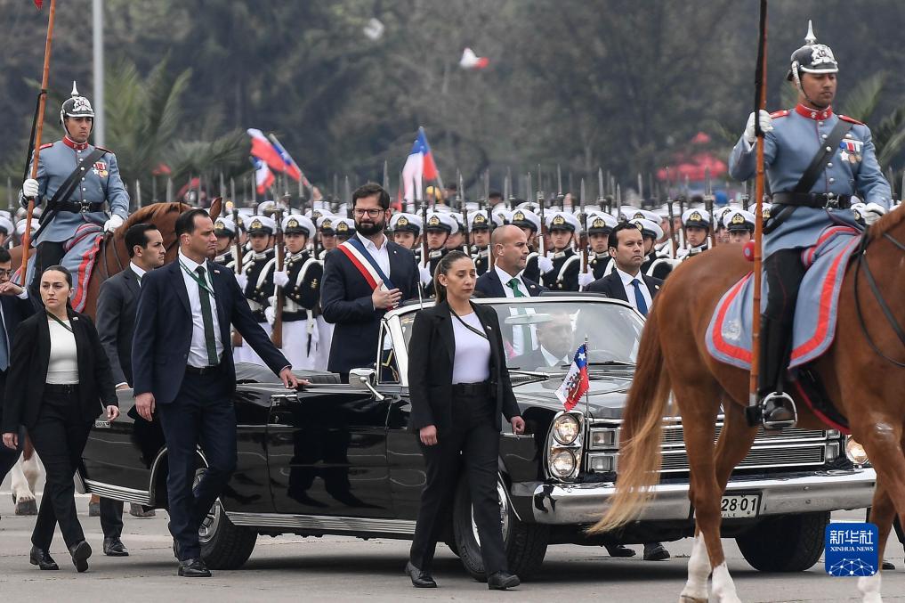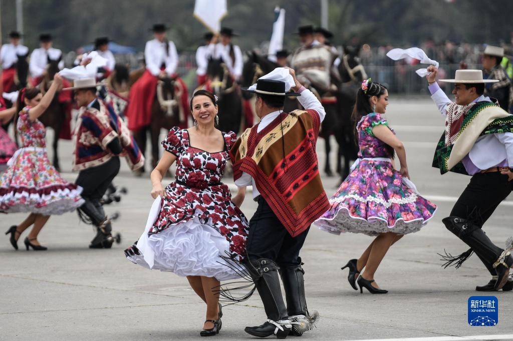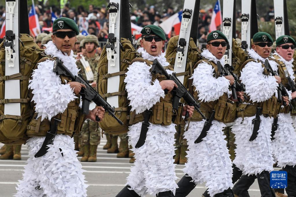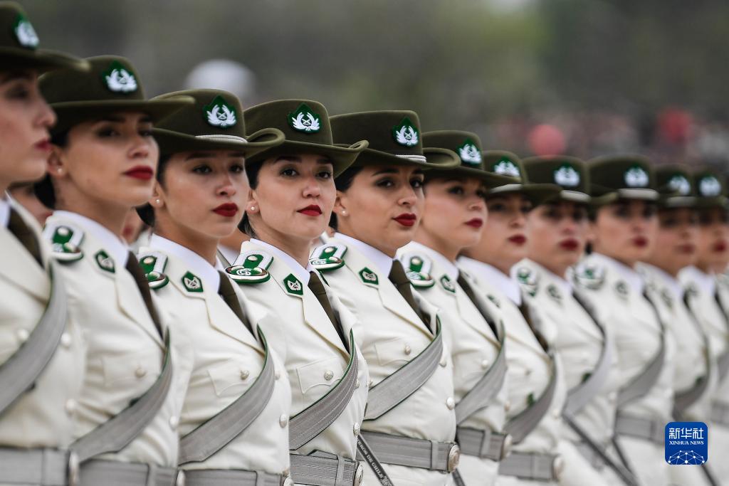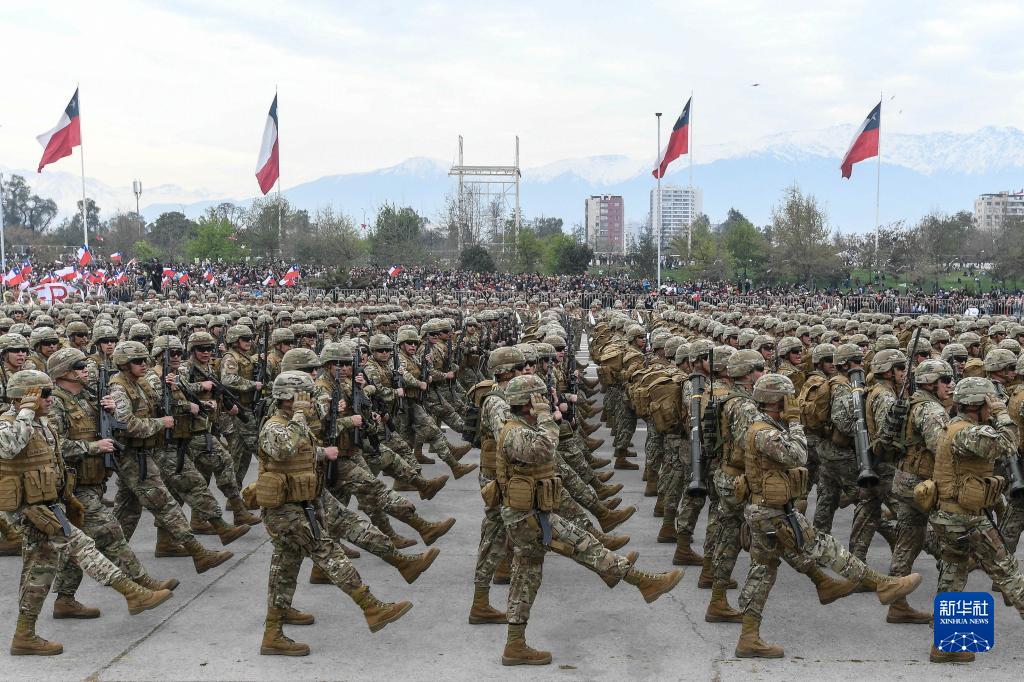 9月19日,一年一度的智利陆军节阅兵式在首都圣地亚哥奥伊金斯公园举行。智利陆海空三军和警察部队7700多人参加了阅兵式。