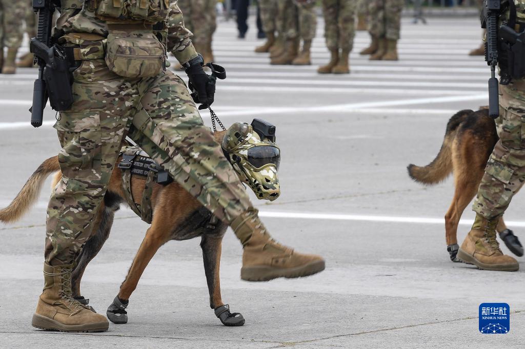 身着民族服装的舞者在阅兵式期间跳起传统舞蹈奎卡。