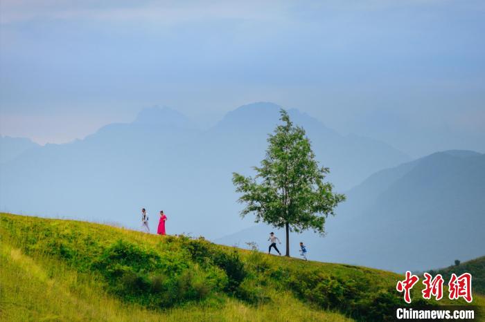 太子山,齐聚有雪山、草甸、森林、奇石、溪流等诸多自然景观,甘肃省临夏州临夏县官方因地制宜,打造出云上河州中国国家3A级旅游景区和和美乡村,吸引游客“西行”探索不一样的西北之景。图为花儿歌手在景区内采风。中新网
