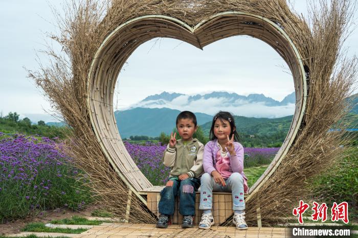孩童在花海前拍照留念。中新网