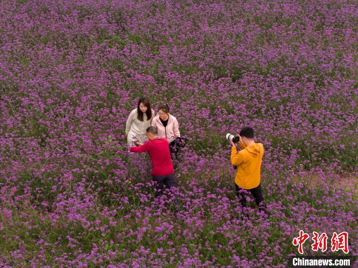 民众在花海内,拍照留念。中新网