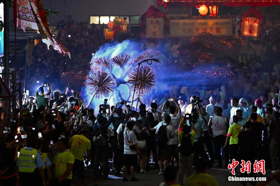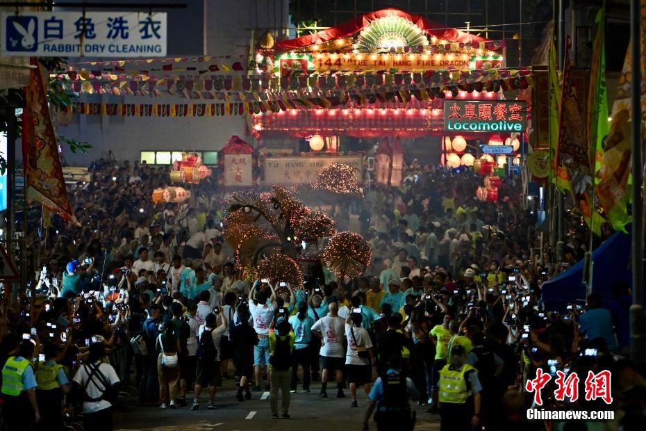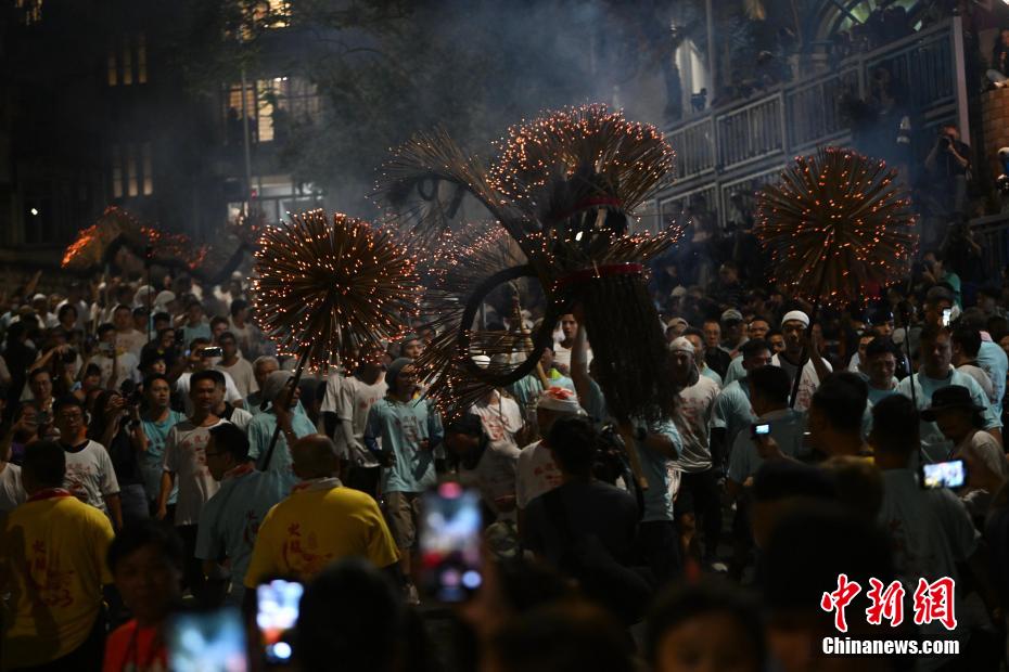 香港大坑复办舞火龙盛会,吸引大批市民及游客前来参与。中新网