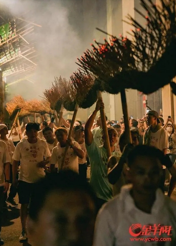 欢快的锣鼓声中,健儿们奋力舞动;“火龙”翻飞、香烟四溢,穿梭于大街小巷,与市民同庆。金羊网