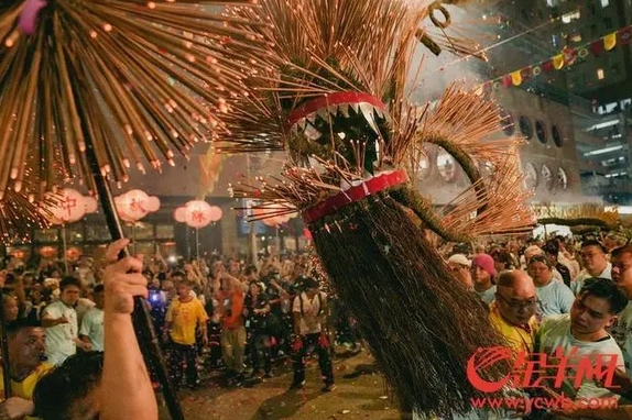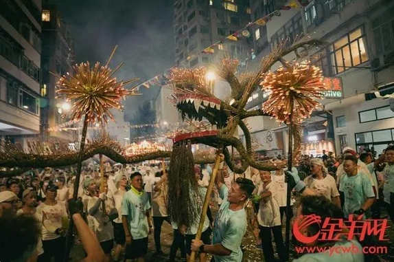 火龙舞动,寓意祈福,“舞火龙”饱含了香港人对中华传统文化的敬意和延续。金羊网