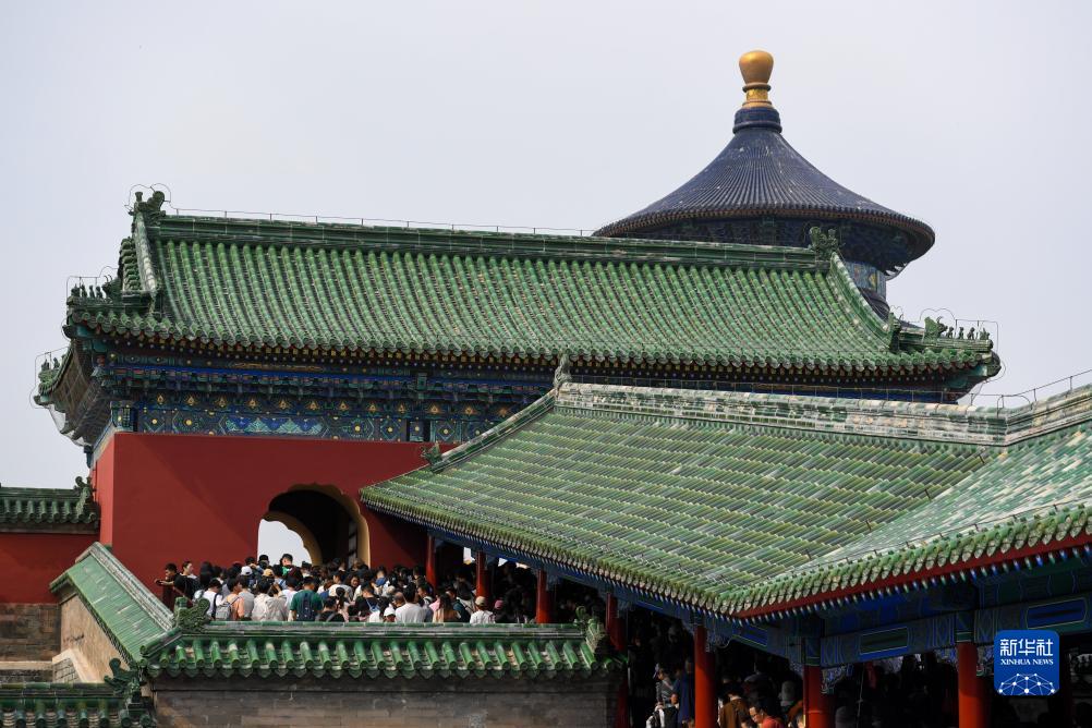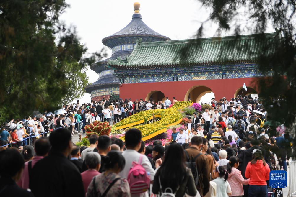 据悉,假期前三天(9月29日至10月1日),北京市重点旅游景区(旅游地区)累计接待游客682.5万人次,同比增长60.6%,比2019年增长31.8%;累计营业总收入41875.8万元人民币,同比增长25.2%,比2019年增长89.4%。图为10月2日,游客在天坛公园内排队前往祈年殿参观。新华社