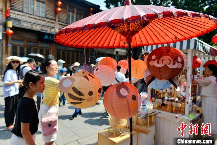 10月2日,福州三坊七巷内,手工文创品吸引游客。中新网
