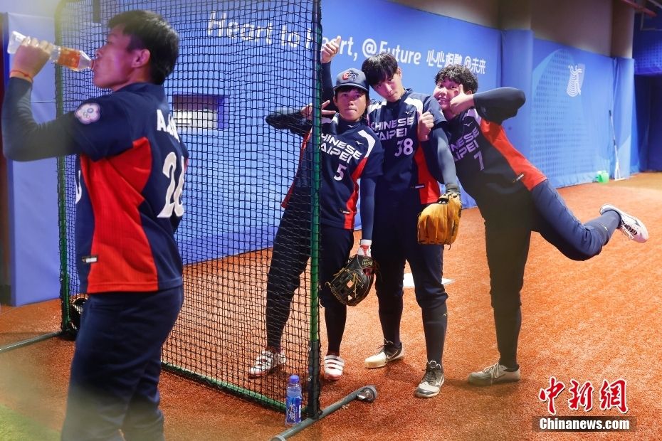 9月30日,杭州第19届亚运会女子垒球超级轮第3场在绍兴棒(垒)球体育文化中心举行,中华台北队6比4战胜菲律宾队。图为中华台北队在候场区合影。中新网