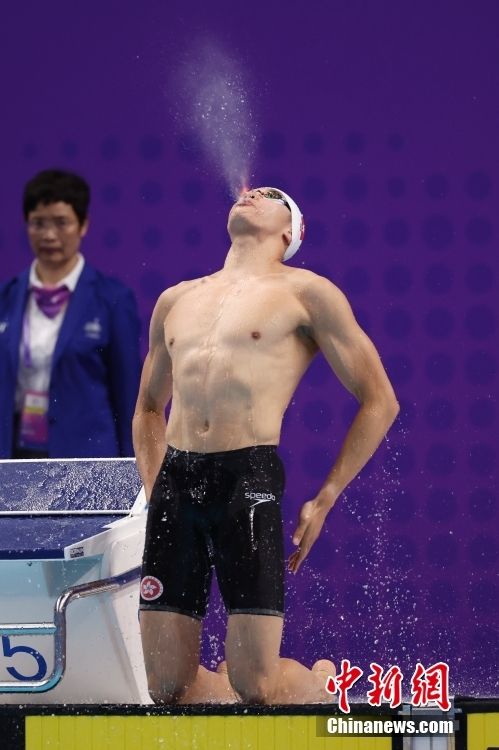 9月25日,杭州第19届亚运会男子50米自由泳决赛在杭州奥体中心游泳馆举行。中国香港选手何甄陶以21秒87获得亚军,比赛现场他表演了一出“龙吐水”。中新网