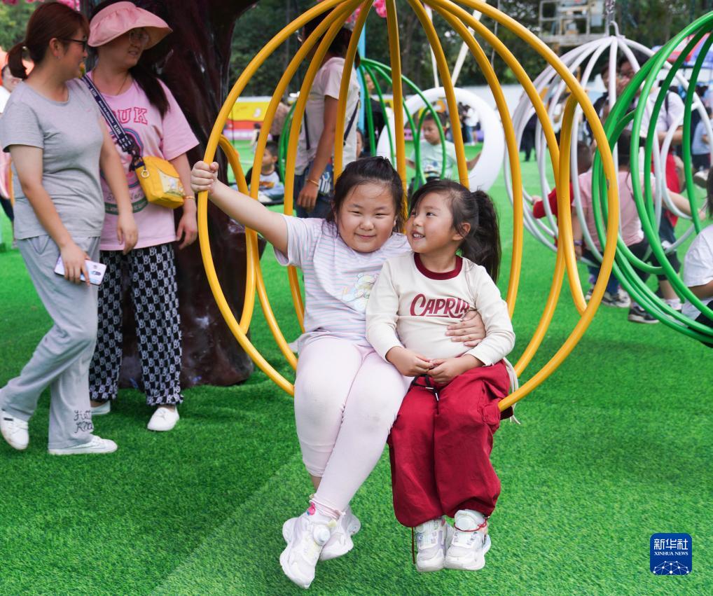 中国国庆期间,各地青少年参加丰富多彩的活动,乐享假期生活。图为10月3日,孩子们在山东省邹平市一家游乐园游玩。新华社