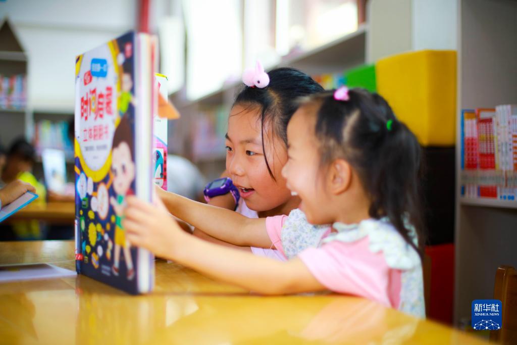 10月3日,小朋友在贵州省黔西市锦绣街道文化站阅读。新华社