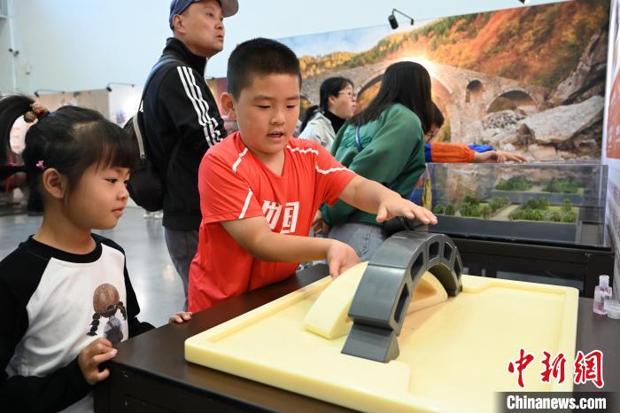 10月3日,在内蒙古呼和浩特市科技馆内,小朋友体验桥梁设计。 中新网