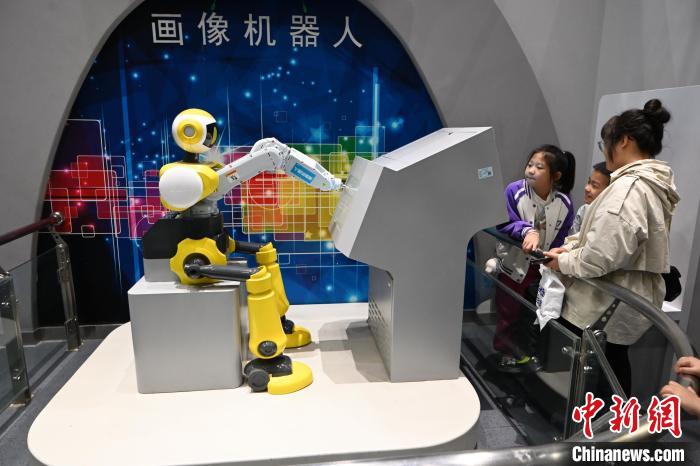 10月3日,在内蒙古呼和浩特市科技馆内,小朋友体验画像机器人。 中新网