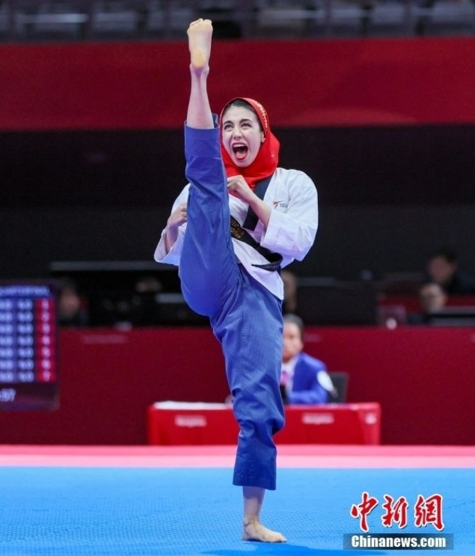 9月24日,杭州第19届亚运会跆拳道女子个人品势比赛在临安体育文化会展中心体育馆举行。伊朗选手马尔扬·萨拉获得铜牌。中新网