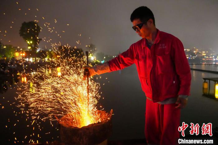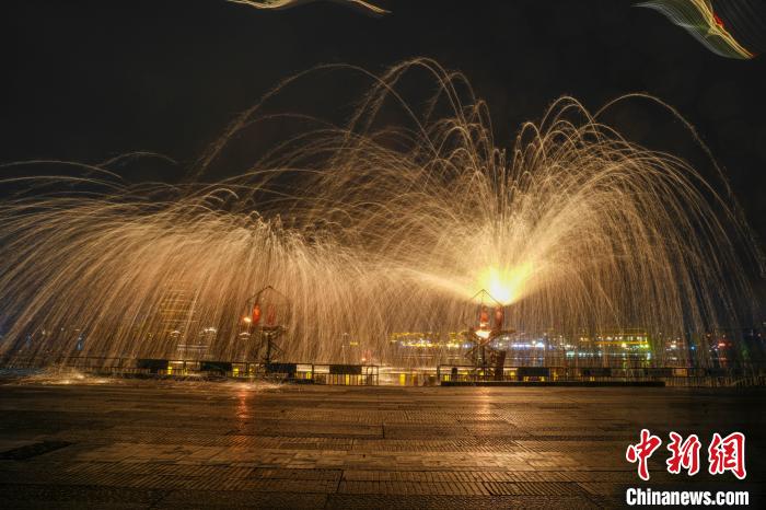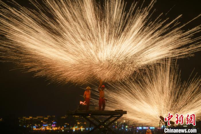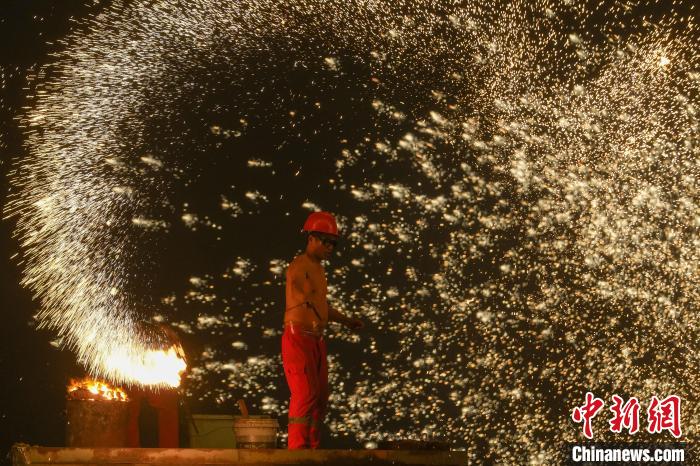 铁水被艺人打向夜空中犹如“铁树银花”。中新网