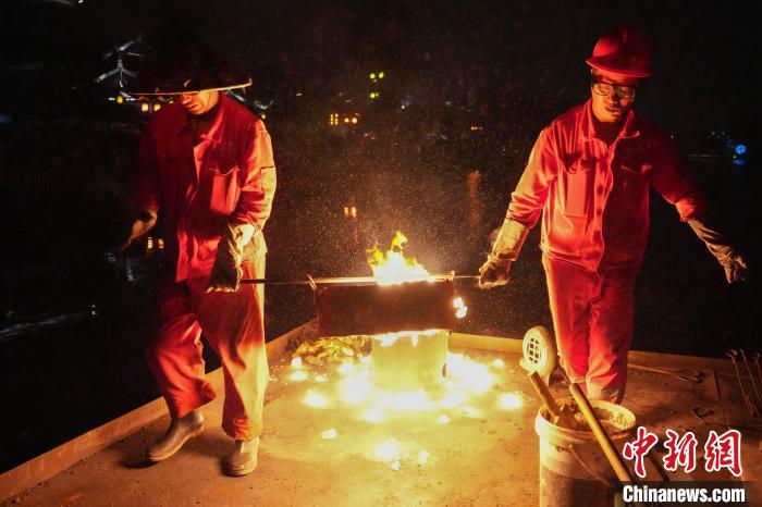 两位艺人为铁水开炉。中新网