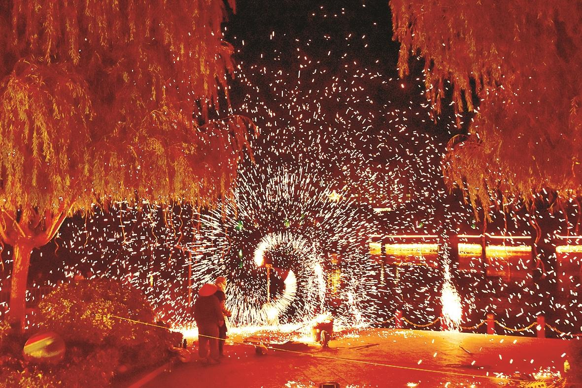 艺人甩动漫天飞舞的铁花。中新网
