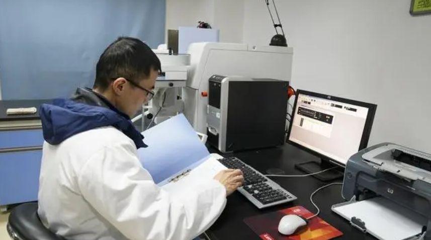 3月16日,魏嵬在实验室里查看水样监测数据。新华社