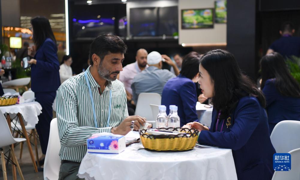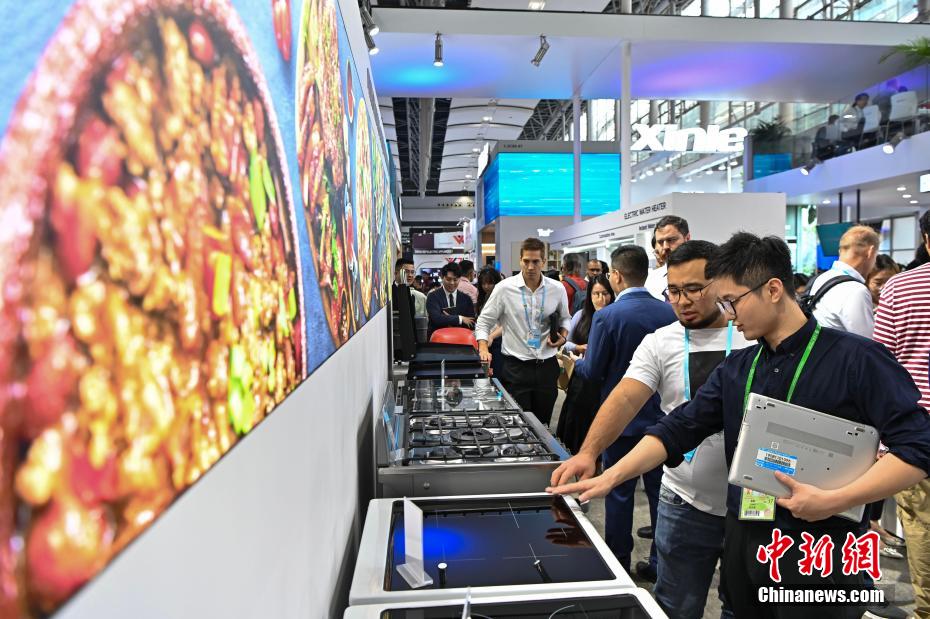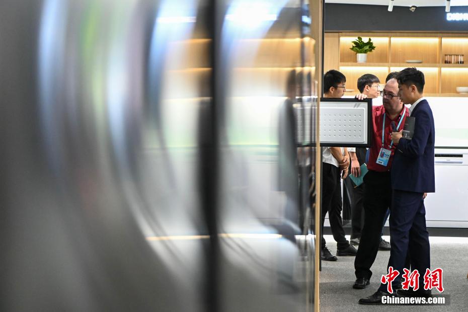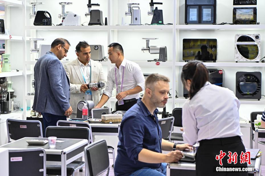 10月15日,家用电器参展商与采购商洽谈。中新网