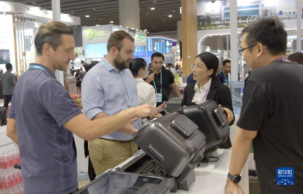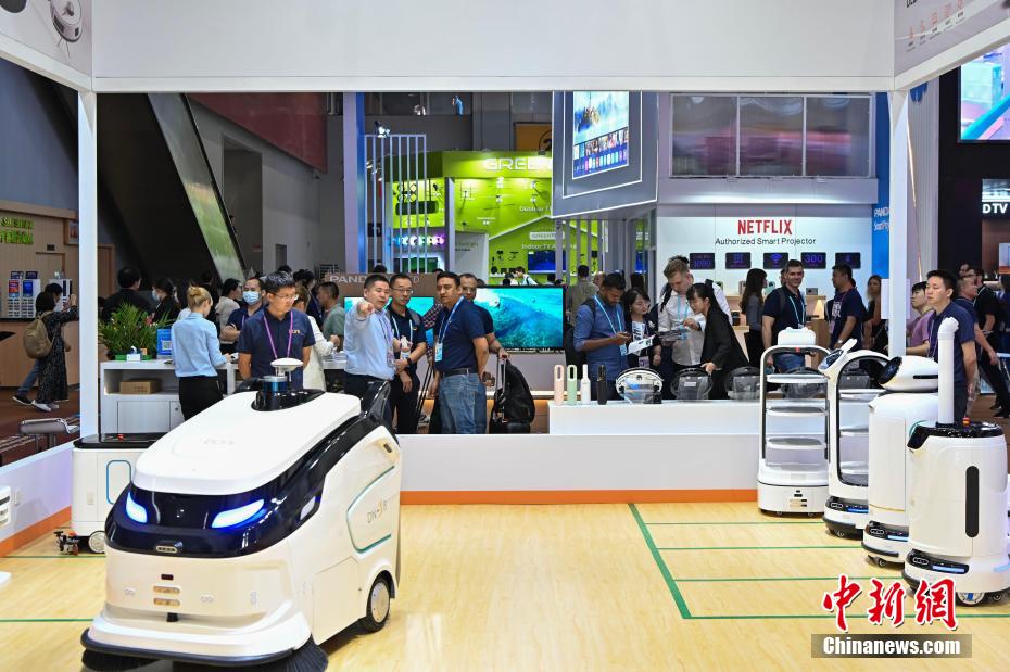 按各期、各展区不重复统计,本届广交会参展企业28533家,比上届增加3135家,其中出口展参展企业27883家;进口展参展企业650家,来自43个国家和地区,其中“一带一路”共建国家参展企业占比60%。图为广交会上的智能机器人产品吸引采购商。中新网