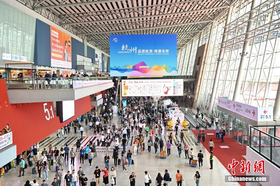 10月15日,广交会展馆内的参展人员。中新网