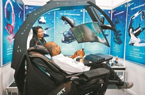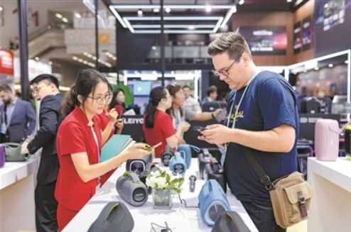 客商在广交会上参观体验。《广州日报》