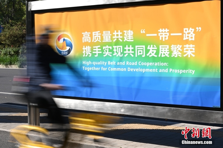 10月14日,第三届“一带一路”国际合作高峰论坛元素装点北京市一处公交车站。中新网