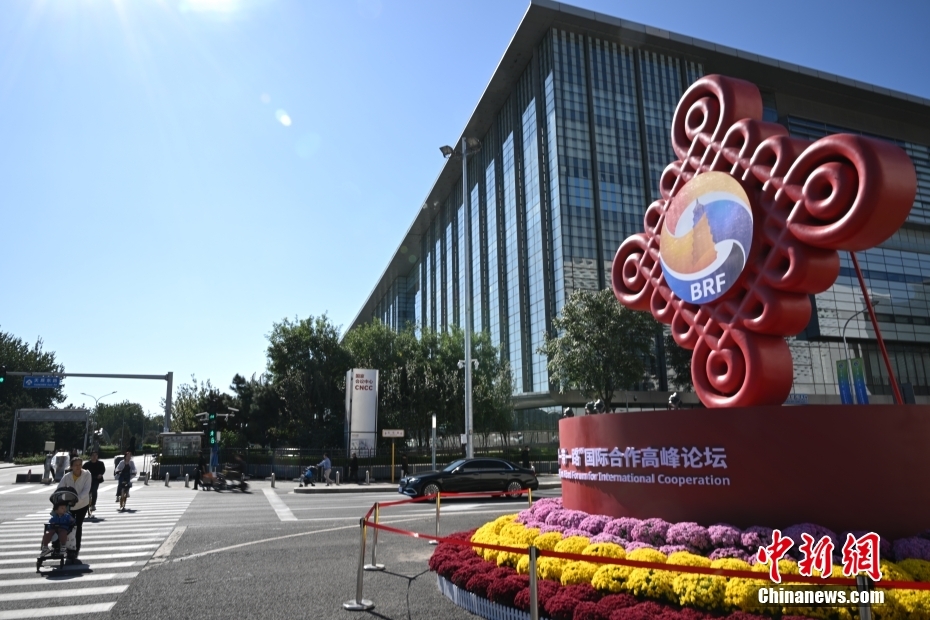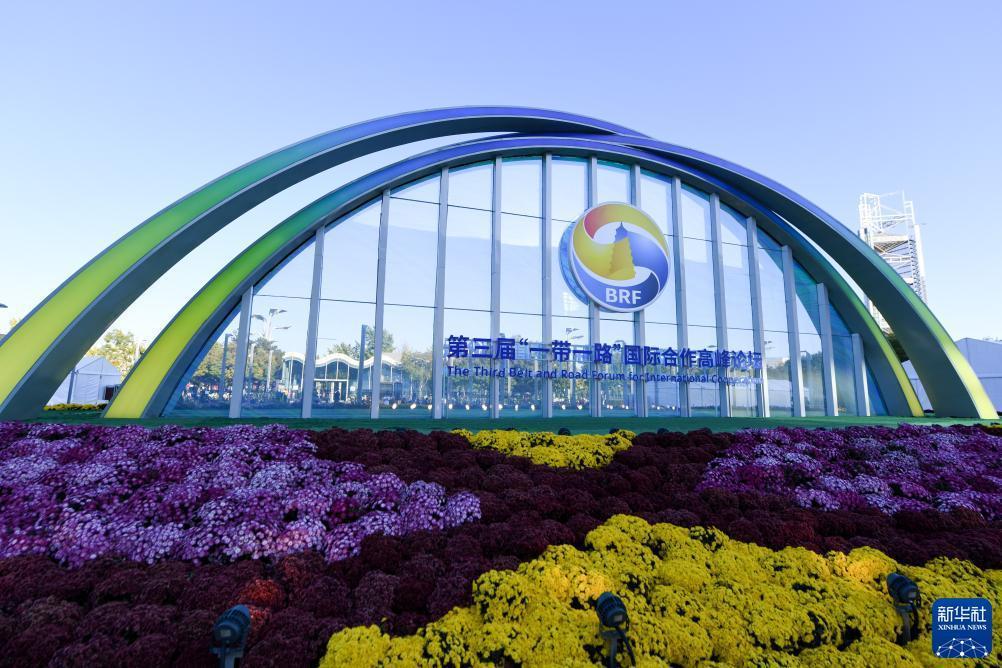 10月14日在北京国家会议中心附近拍摄的第三届“一带一路”国际合作高峰论坛景观布置。新华社