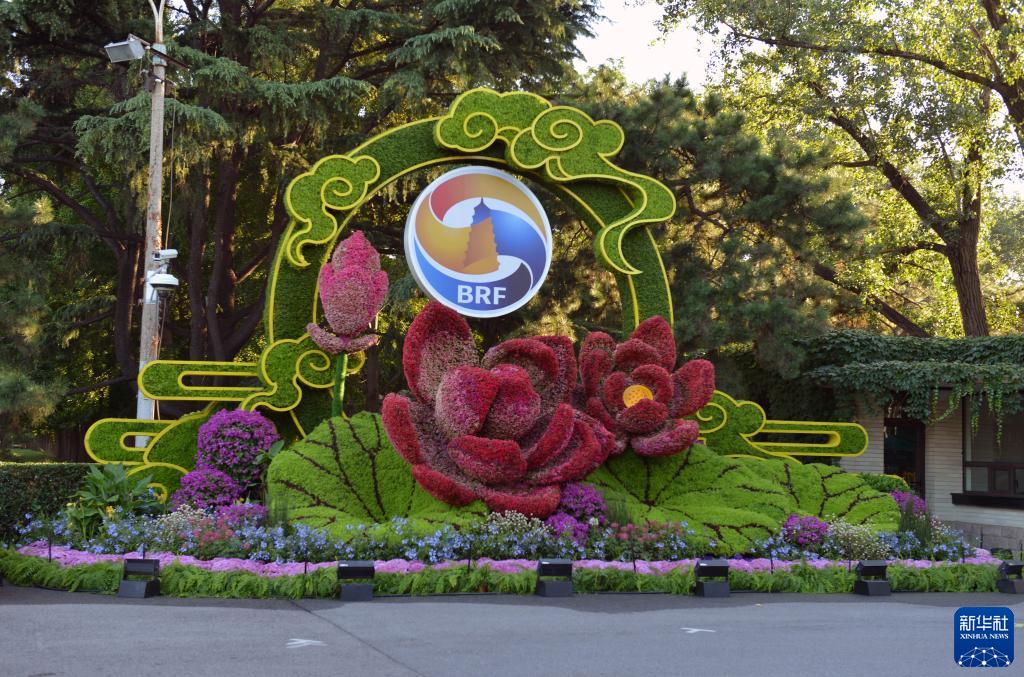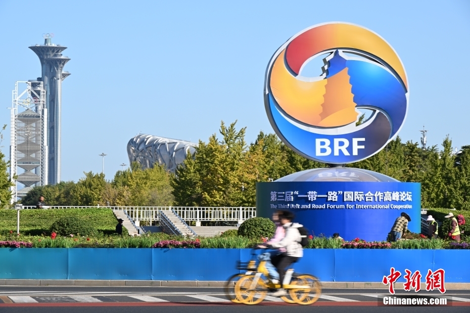 10月14日在北京市朝阳区北辰路附近拍摄的第三届“一带一路”国际合作高峰论坛景观布置。新华社