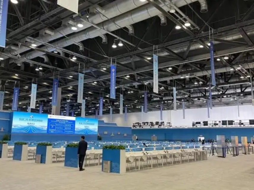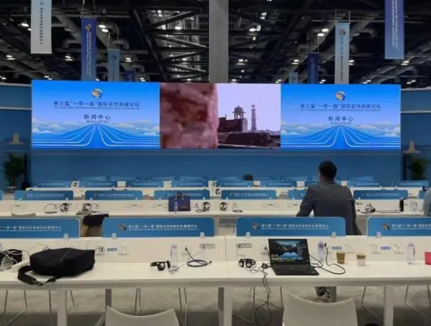 10月15日,第三届“一带一路”国际合作高峰论坛新闻中心场内一切准备就绪。《新民晚报》
