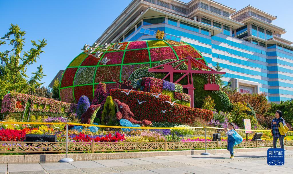 10月15日在北京西单拍摄的一处花坛景观。新华社