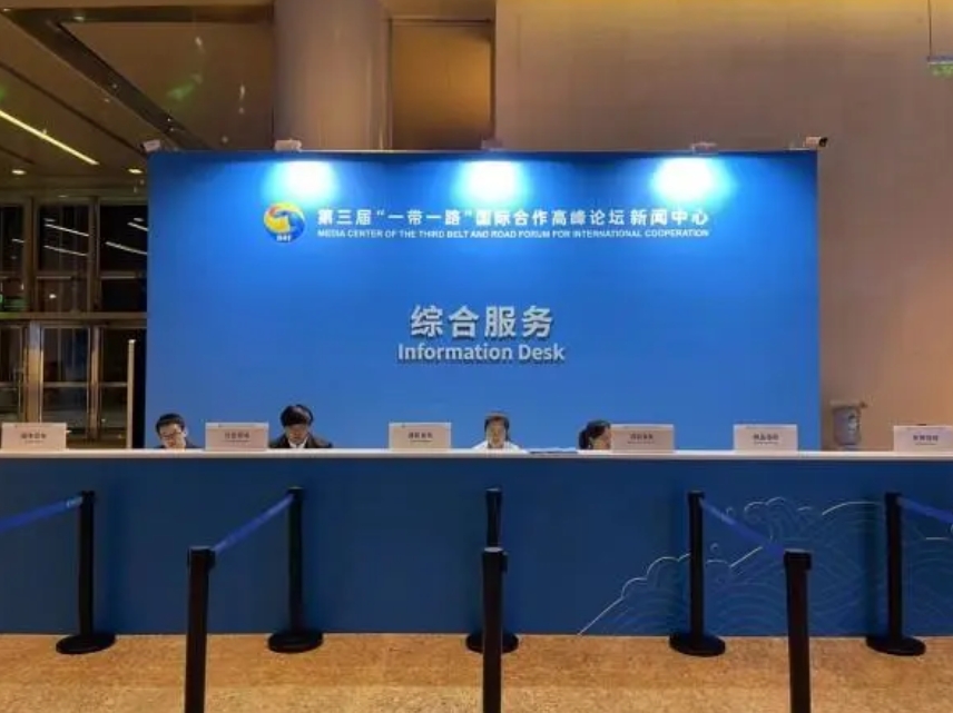 第三届“一带一路”国际合作高峰论坛新闻中心的公共服务台。《新民晚报》
