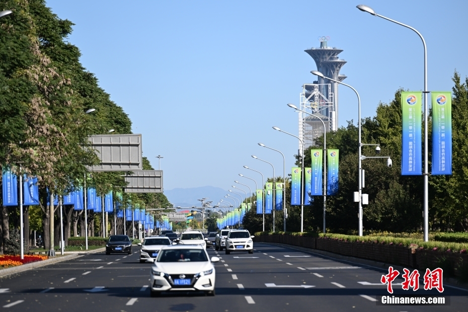 10月14日,第三届“一带一路”国际合作高峰论坛元素道旗装点北京街头。中新网