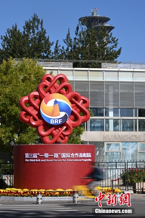 10月14日,市民从北京市一处第三届“一带一路”国际合作高峰论坛元素装置前经过。中新网