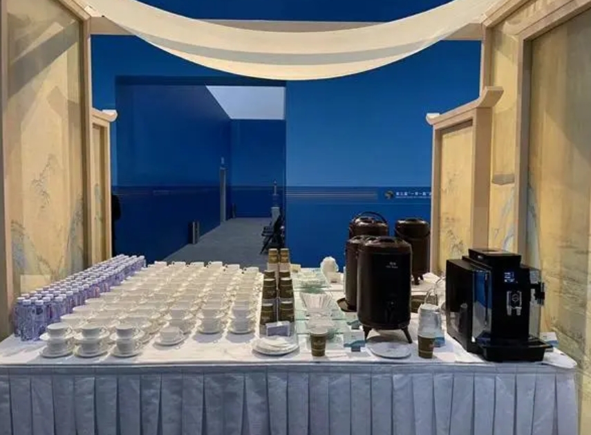 此次论坛共有近4000名中外记者报名注册,其中境外媒体记者达到1200多人,体现了国际社会对“一带一路”的高关注。 图为茶歇区。这里是媒体工作者的加油站。媒体餐厅和茶歇区,为注册记者提供免费餐饮、茶饮服务。《新民晚报》