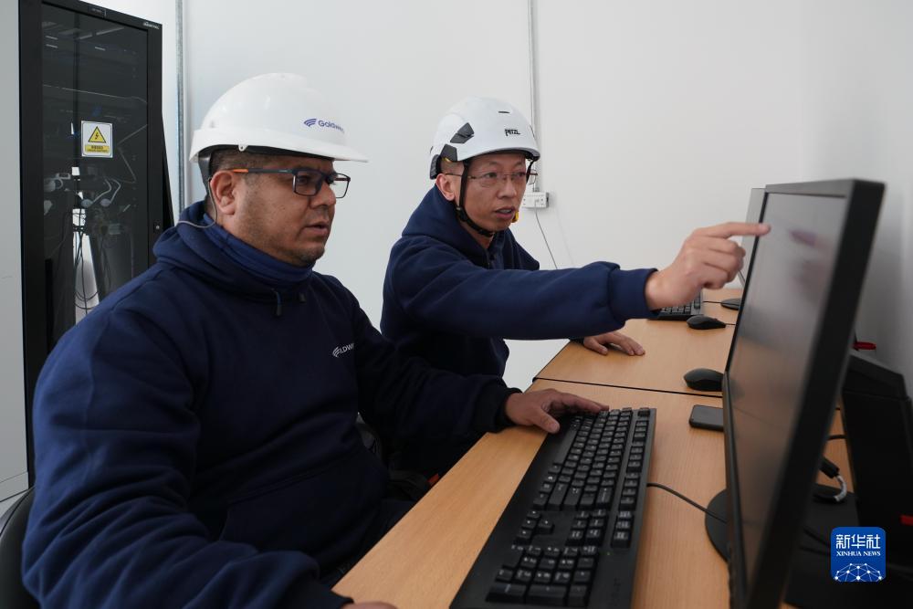 马德林港郊区的罗马布兰卡风电场是阿根廷最大的风电场之一。项目分为六期,其中,罗马布兰卡一期、二期、三期和六期风电场以及位于布宜诺斯艾利斯省的米拉马尔风电场由中国金风科技股份有限公司投资建设,共同组成了赫利俄斯风电项目群。风电场唯一的常驻中方员工——项目工程师马列介绍,赫利俄斯风电项目群采用金风科技自主研发的GW3S智能风机,发电效率高、安全性好。此外,每台风机上有200多个传感器,运维人员可以通过系统实时监控每台风机的状态,有效节约人力成本。图为6月12日,在阿根廷丘布特省马德林港的罗马布兰卡一期风电场,项目工程师马列(右)与当地工作人员检查风机运行状况。