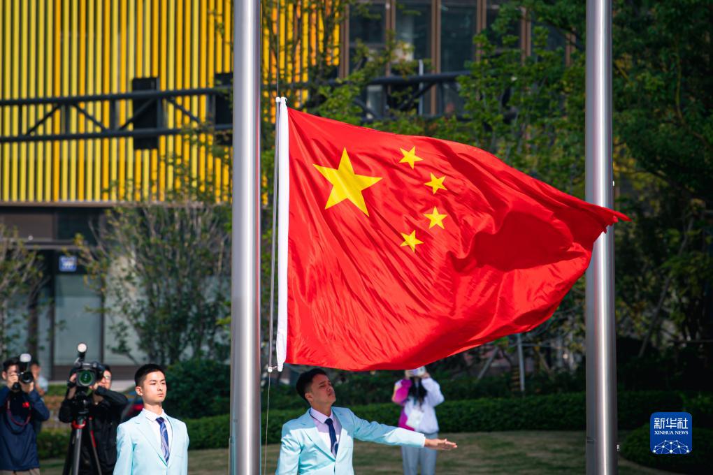10月16日拍摄的中国体育代表团升旗仪式。新华社