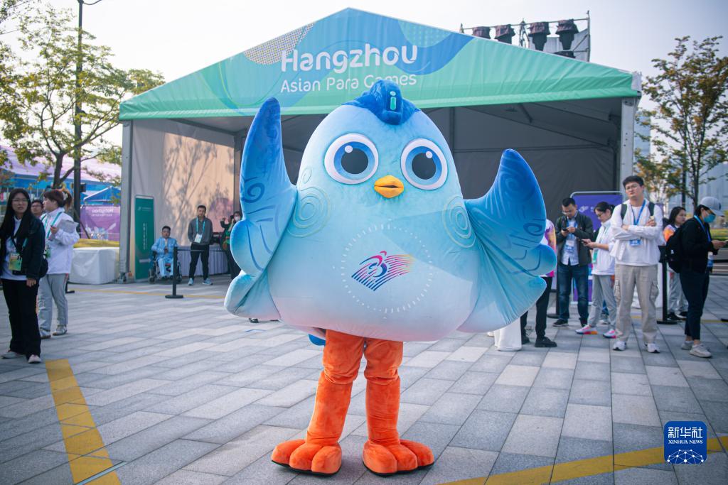 杭州亚残运会吉祥物“飞飞”在开村仪式上。新华社