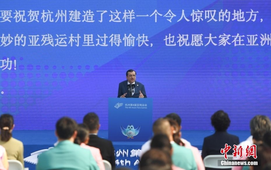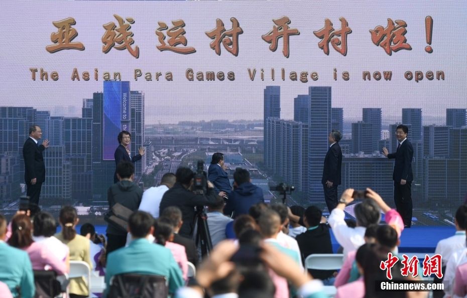 10月16日,杭州亚残运村举行开村仪式暨中国体育代表团欢迎仪式,标志着亚残运村正式投入赛时运行。开村仪式通过简短热烈的活动,营造出开门迎客的喜庆氛围。中新网
