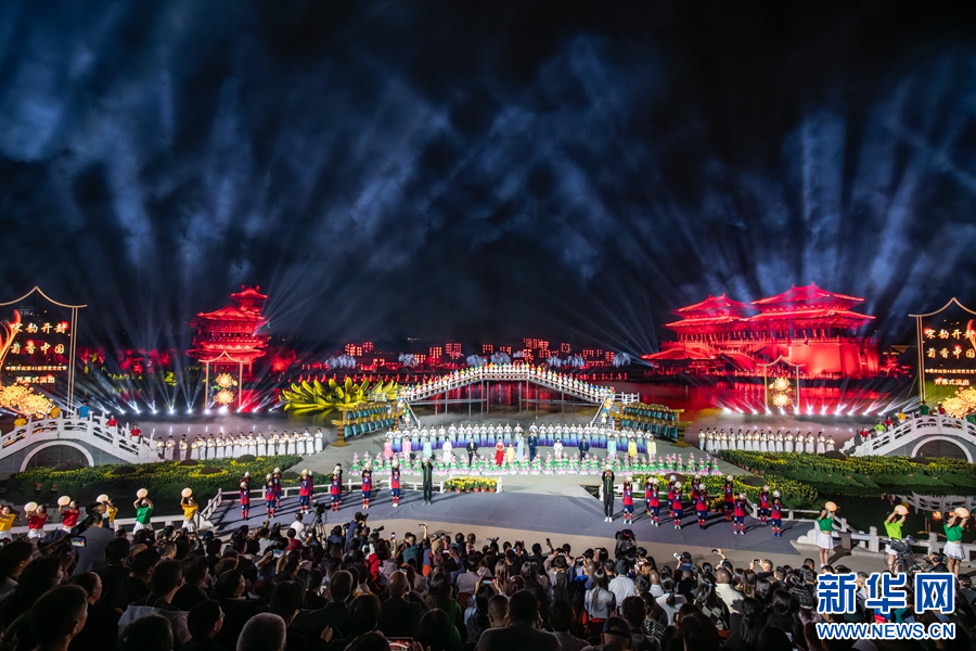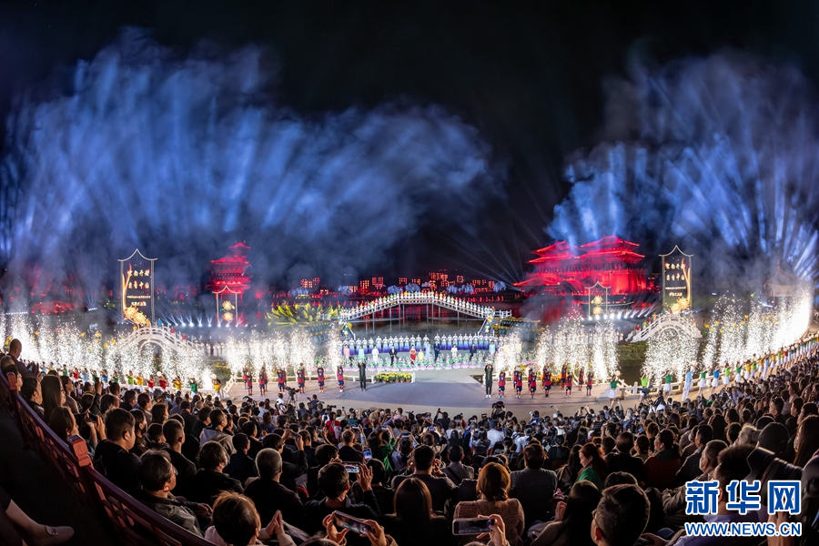 “宋韵开封·菊香中国”中国开封第41届菊花文化节开幕式17日晚在河南开封清明上河园举行。次日,古都开封清明上河园第十二届国际菊花展惊艳亮相,共展出各类艺菊、盆菊、陪衬花卉等共约800多个品种,名品菊花数百万株,展览设置的中国馆、欧洲馆、美洲馆、亚洲馆、东南亚馆等展馆,充分展示了菊花的多元化艺术表现力和国际菊花品种及栽培形式的多样性。图为中国开封第41届菊花文化节开幕式文艺演出现场。新华网