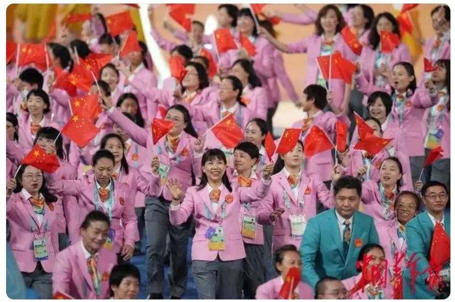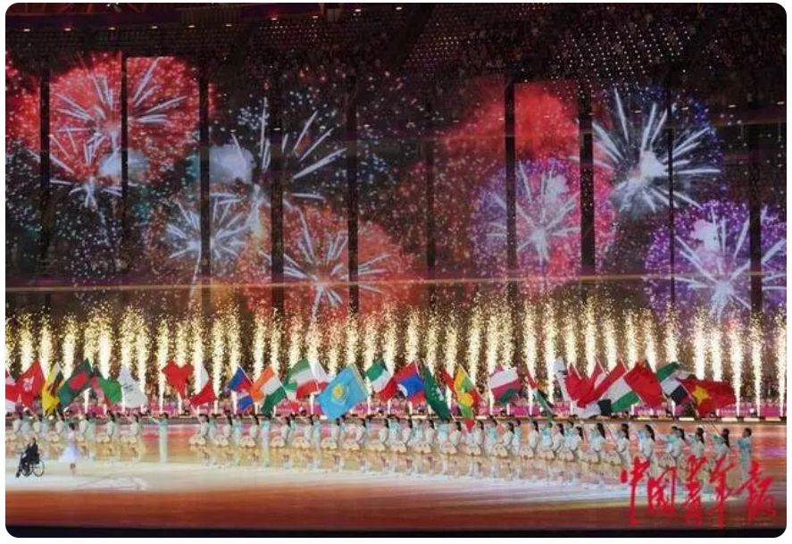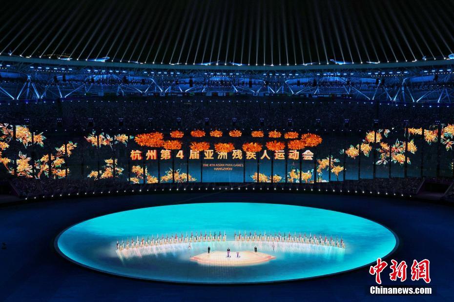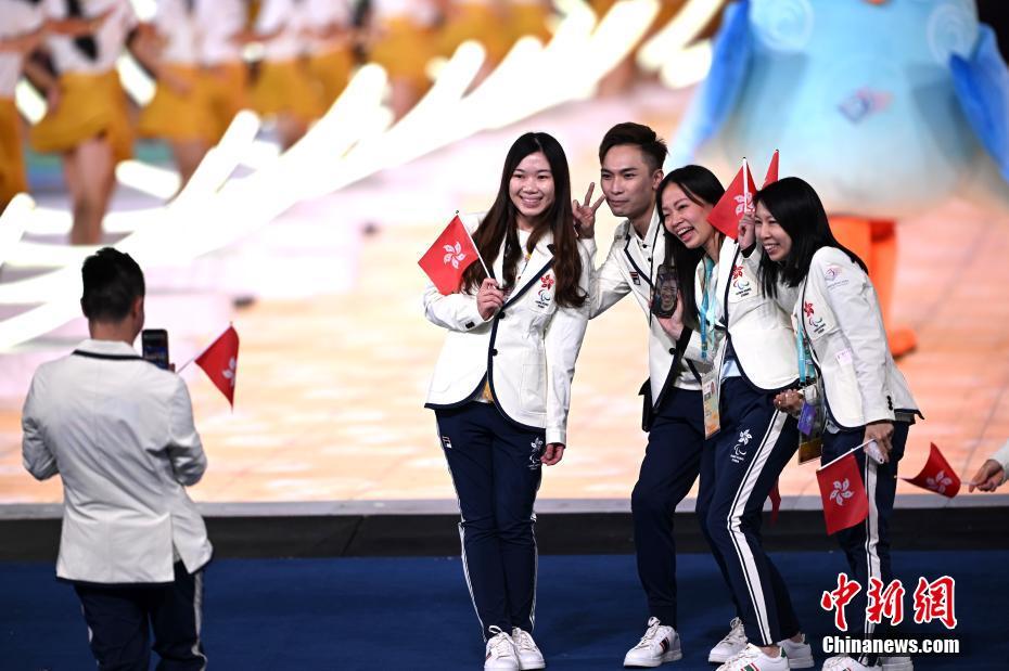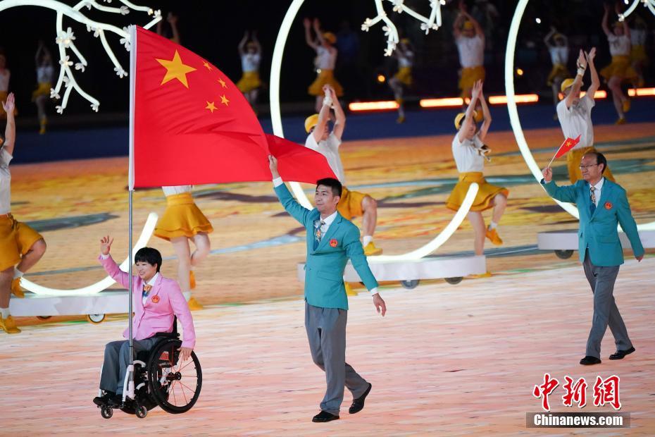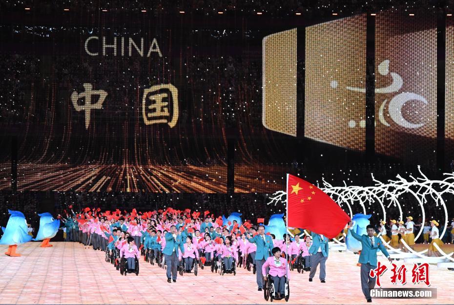继杭州亚运会之后,来自亚洲各国和地区的朋友们又在亚残运会的感召下相聚在一起,共享这一充满荣耀光芒、拼搏精神、自强风采和团结友谊的亚洲残疾人体育盛会。10月22日,杭州第4届亚洲残疾人运动会开幕式在杭州奥体中心体育场举行。图为中国代表团入场。中新网