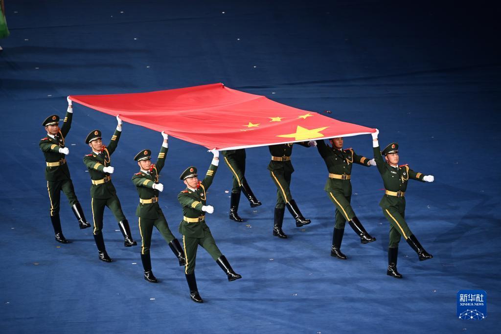 中华人民共和国国旗入场。新华社