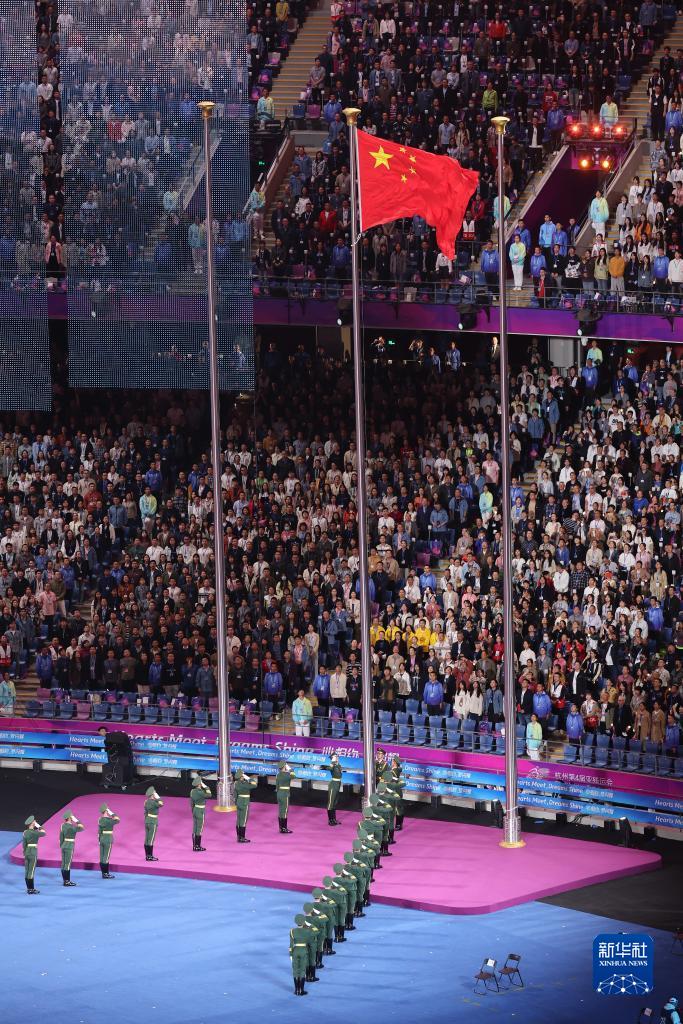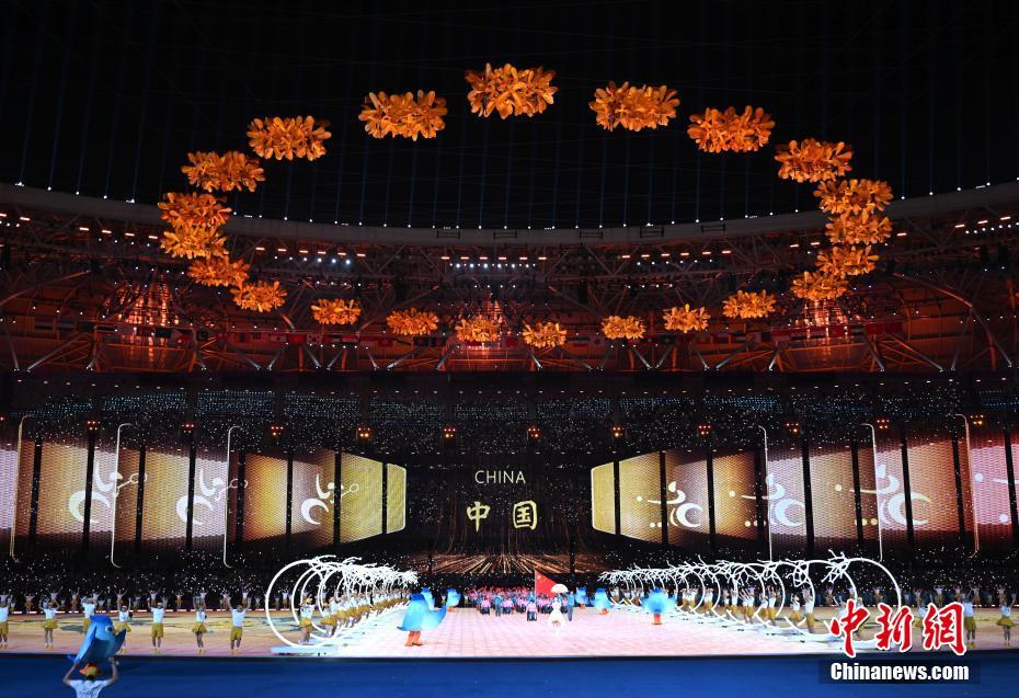 10月22日晚,杭州第4届亚洲残疾人运动会开幕式在浙江杭州奥体中心体育场举行。图为中国国旗入场仪式。中新网