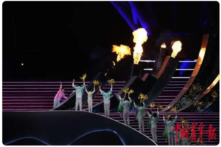 中国残疾人游泳运动员徐佳玲用她的左手——智能仿生手点燃主火炬。中国青年网